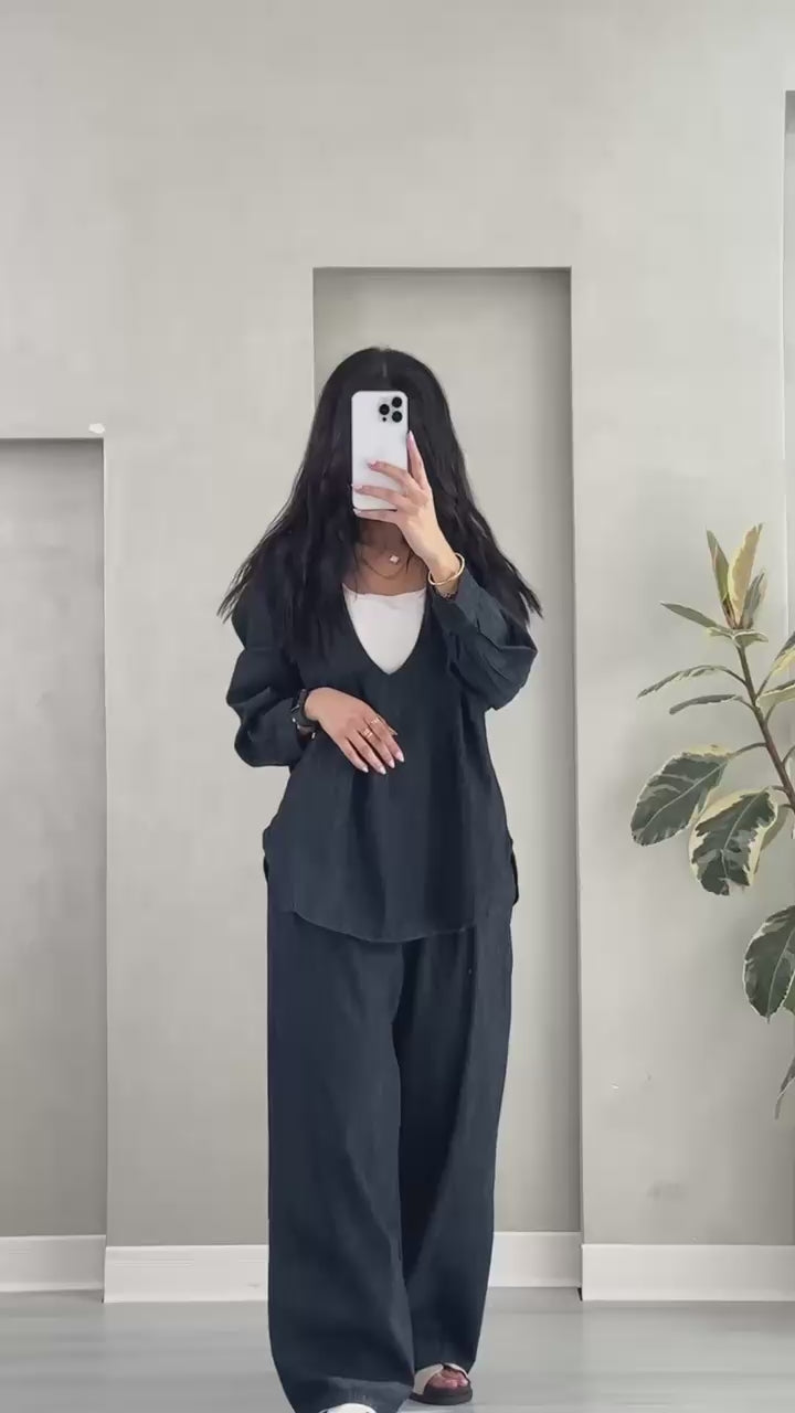 القوة الناعمة في إطلالتك المنزلية! طقم يجمع أناقة البدلة الرسمية مع راحة ملابس الاسترخاء. قطعة أساسية تمنحك الثقة والأناقة حتى في أوقات الراحة."