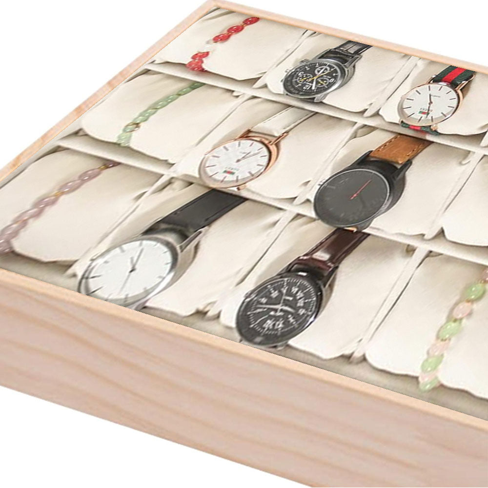 Hand-made and Stackable:Stylifing watch tray display make precisely by hand to ensure that each compartment is aligned. Each jewelry tray is designed to be stacked on another tray, suitable for placement on such drawers and dressing tables. |