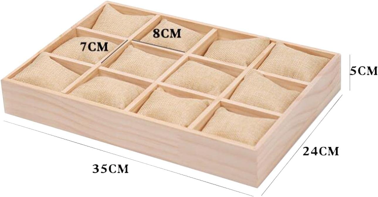 علبة تنظيم الساعة 12 فتحة، حافظة ساعة من الخيش ووسائد وسوار وحامل سوار عرض صندوق ساعة حافظة سوار للرجال والنساء