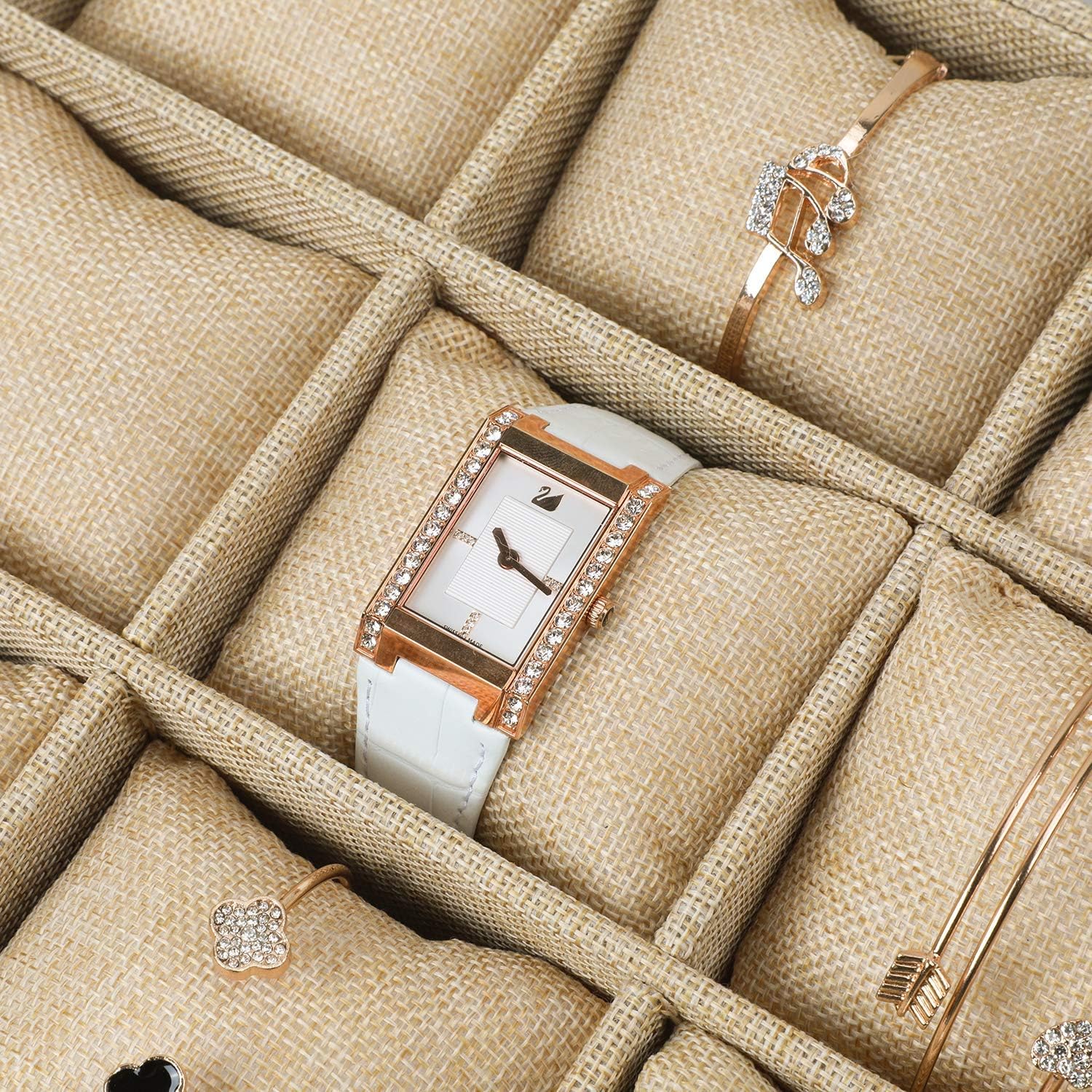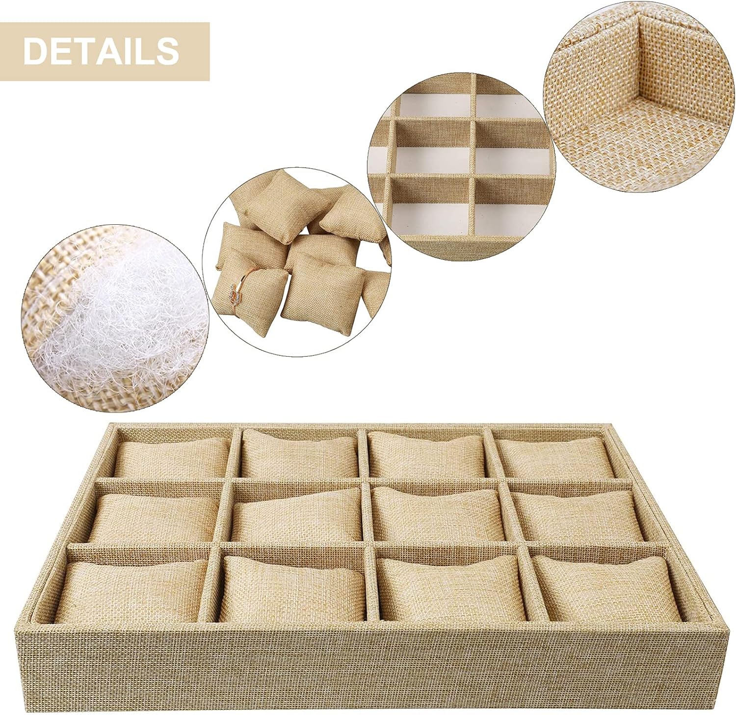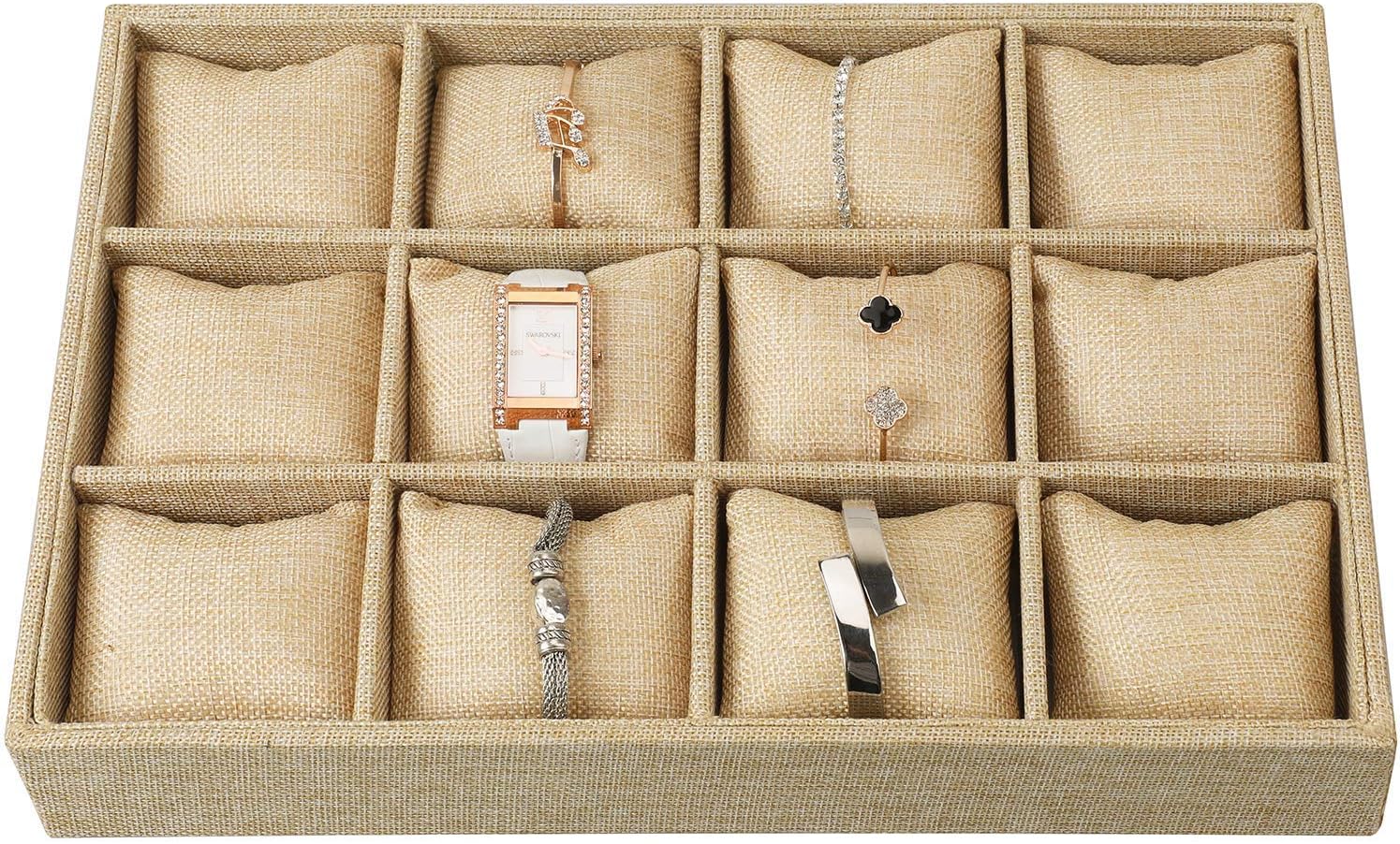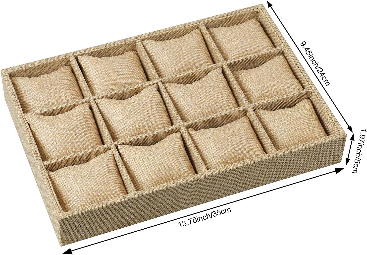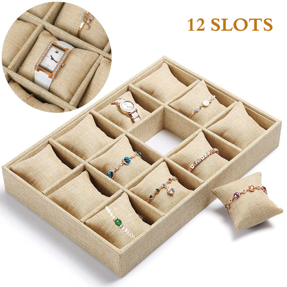 علبة تنظيم الساعة 12 فتحة، حافظة ساعة من الخيش ووسائد وسوار وحامل سوار عرض صندوق ساعة حافظة سوار للرجال والنساء
