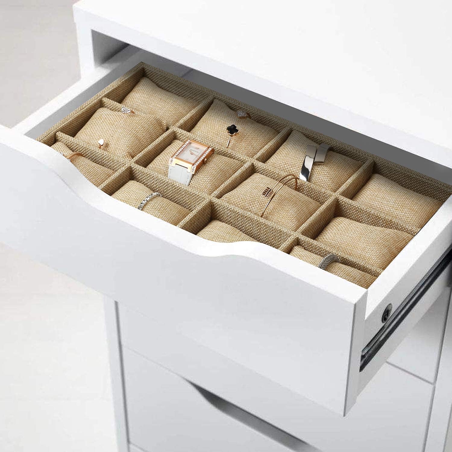 High quality MaterialThe watch pillow tray made of high quality sackcloth fabric to storage your kinds of jewelries and perfect to prevent scratches and dust proof. |