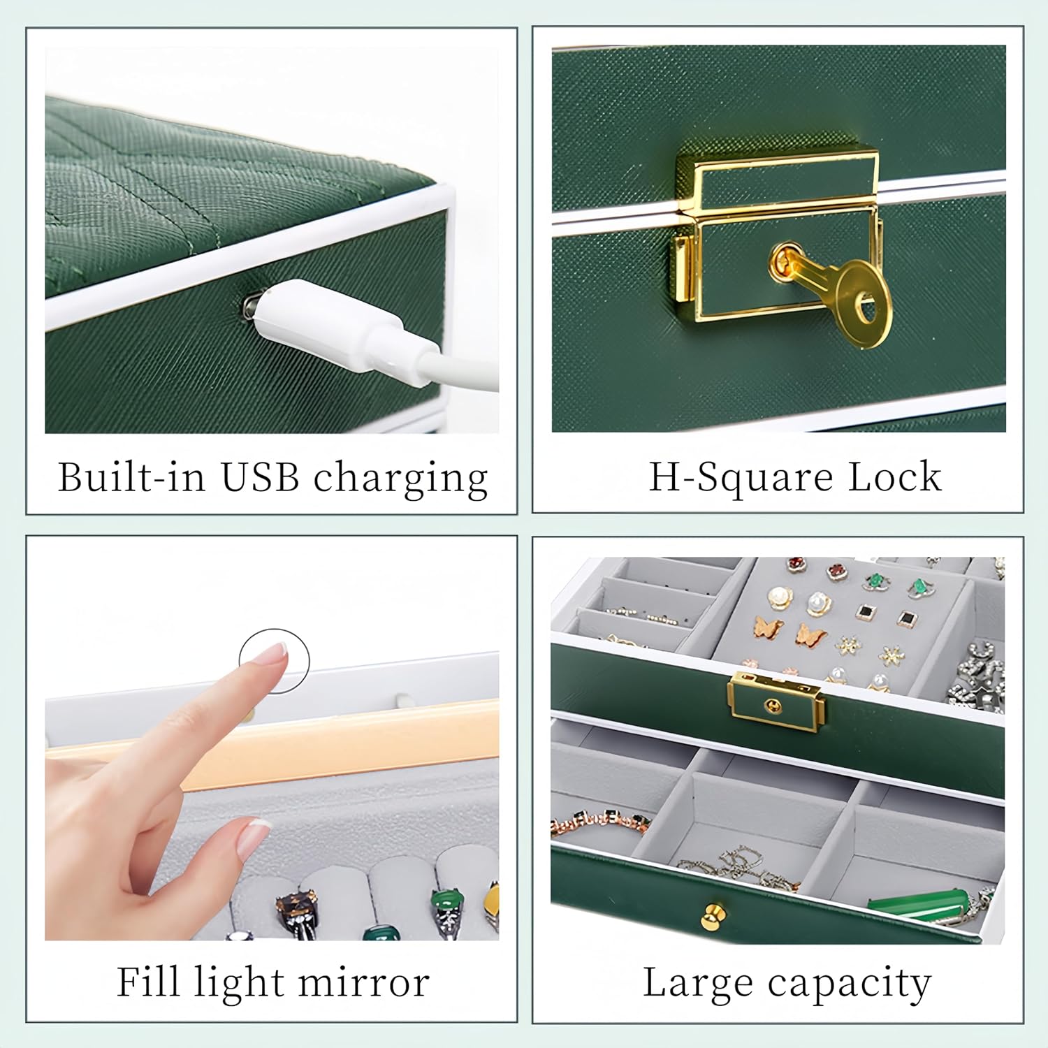- شحن مريح: يتميز هذا المنظم بمنفذ شحن من النوع C ويأتي مع كابل شحن، مما يسمح لك بشحن أجهزتك في مكان وجود مجوهراتك - راحة إضافية.